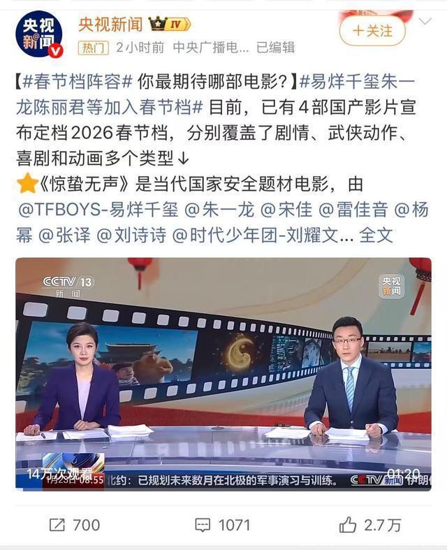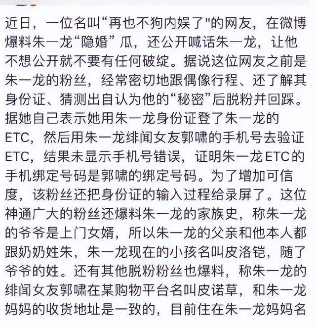 这事要从哪说起,其实从那条热搜冒出来的时候,很多人心里已经有数了,标题写得含糊,条件却列得很细,年纪卡在那,名字是三个字。 朱一龙又一次被推到台前,而且是那种他最不喜欢的方式,没有新戏宣传,没有角色讨论,只有猜测,拼接,还有越传越离谱的版本。 这种场面他并不陌生,六年前已经经历过一轮。 那次更早,也更狠,有人自称老粉,语气笃定,说法完整,把他的大学生活,感情线,婚姻状态,一路往下捋,连孩子的姓氏都给安排好了。 说是遵循家族习俗,细节多到让人一愣,随后几张模糊不清的截图被扔出来,看起来像证据,其实什么都没说清。 那一轮舆论发酵得很快,“朱一龙隐婚生子”直接冲上热搜,很多人第一次意识到,这个一向安静拍戏的人,原来也会被这样围观。 他那边的反应很简单,没有解释私生活,没有情绪输出,工作室直接发声明,措辞冷静,重点明确,私人信息被窃取,内容恶意拼凑,已经侵权。 声明发完,事情慢慢降温,他本人依旧不露面,从那之后,他对这类话题更谨慎,也更疏离。 其实朱一龙从来不是靠“单身”“神秘”这些标签立住的,他进圈早,红得却晚,《镇魂》之前,他在各种剧里打转,角色不算小,但也没被记住,十年时间,积累的更多是经验,不是话题。 真正被看见之后,他反而开始主动后退,作品一部接一部,曝光却越来越少。 《人生大事》上映的时候,很多人说他变了,形象变了,气质变了,像是把自己整个拆掉重装了一次,一个殡葬师,灰头土脸,情绪压在骨头里,没有讨好观众的表演。 《消失的她》又是另一种极端,人物偏执,狠厉,情绪随时可能失控,这种角色对他来说并不安全,他接的时候其实犹豫过。 一方面是兴奋,角色复杂,空间大,另一方面是担心,这不是他习惯的路子,万一演不住,很容易翻车。 他和陈思诚聊了很久,把人物一点点拆开,从类型到结构,再到情绪走向,那次聊天对他影响很大,决定接下来的那一刻,他其实已经给自己加了很高的标准。 进组之后,他的状态一直是收着的。 那场肢体冲突戏,对手演员让他别顾虑,越真越好,他还是反复调整,怕伤人,也怕假,动作角度,力道,全都要卡在一个极窄的位置。 这种较真不是临时起意,是他拍戏的常态,他自己说过,拍戏就是和自己耗,骗过自己,观众才会信。 搭档评价他的时候,用词都很相似,认真,克制,投入,很少有人提他轻松或者随意,他好像一直在把自己往角色里压。 这几年,他接的角色跨度越来越大,《志愿军》里的状态,和前面的电影完全不同,人物气质切换得干脆,没有留下明显的个人痕迹。 再到《惊蛰无声》,国家安全题材,本身就对演员要求很高,不是情绪外放的戏,更考验稳定度。 这部片子官宣的时候,央视频,央视网文娱接连点名朱一龙,语气很平,不夸张,也不煽情,只是在谈作品的时候,把他当成核心演员来提。 这种点名,其实比奖项更直观,不是突然捧,而是确认,很多人这时候才想起陈凯歌当年那句话,说朱一龙人长得好,戏也好。 当年这句话出来的时候,讨论不算多,那会儿朱一龙刚红,质疑声更多,觉得是场面话,是客套。 现在回头看,反而显得笃定,朱一龙的底色一直很清楚,他对走红这件事看得很淡,甚至有点回避。 他说红不红不是演员能控制的事,想也没用,他更在意下一部戏,下一次进组,所以他一直和圈子保持距离,不混社交,不制造话题,不主动解释私生活。 不是清高,是他很清楚自己适合什么,演员需要一点神秘感,不是靠包装,是靠把自己藏起来,让角色站出来。 他怕被消耗,也怕被定义,在他看来,每一个新角色,之前的成绩都得清零,这一点,他说过不止一次。 所以你会发现,他每次出现,几乎都是为了作品,其他时间,他像是从娱乐圈隐身了一样,这次再被推到风口,节奏却已经不一样了。 舆论还在猜,央媒已经在谈他的作品,一边是热搜里的流言,一边是镜头里的角色,站在中间的朱一龙,没有变过姿态。 不回应猜测,不解释生活,只继续拍戏,这种选择不讨巧,但很稳,到现在再说他大器晚成,其实已经有点过时了。 他已经不需要再证明什么,十年时间,他把自己磨成了一个只靠作品说话的演员,没有乱七八糟的炒作,没有刻意经营的人设。 把演戏当成一件长期的事,一件需要反复打磨的事,央媒的点名,只是把这条路照亮了一下,真正走路的人,早就走在前面了。 艺绽|张艺谋新作《惊蛰无声》春节上映,易烊千玺、朱一龙、宋佳上演当代谍战大戏--北京日报